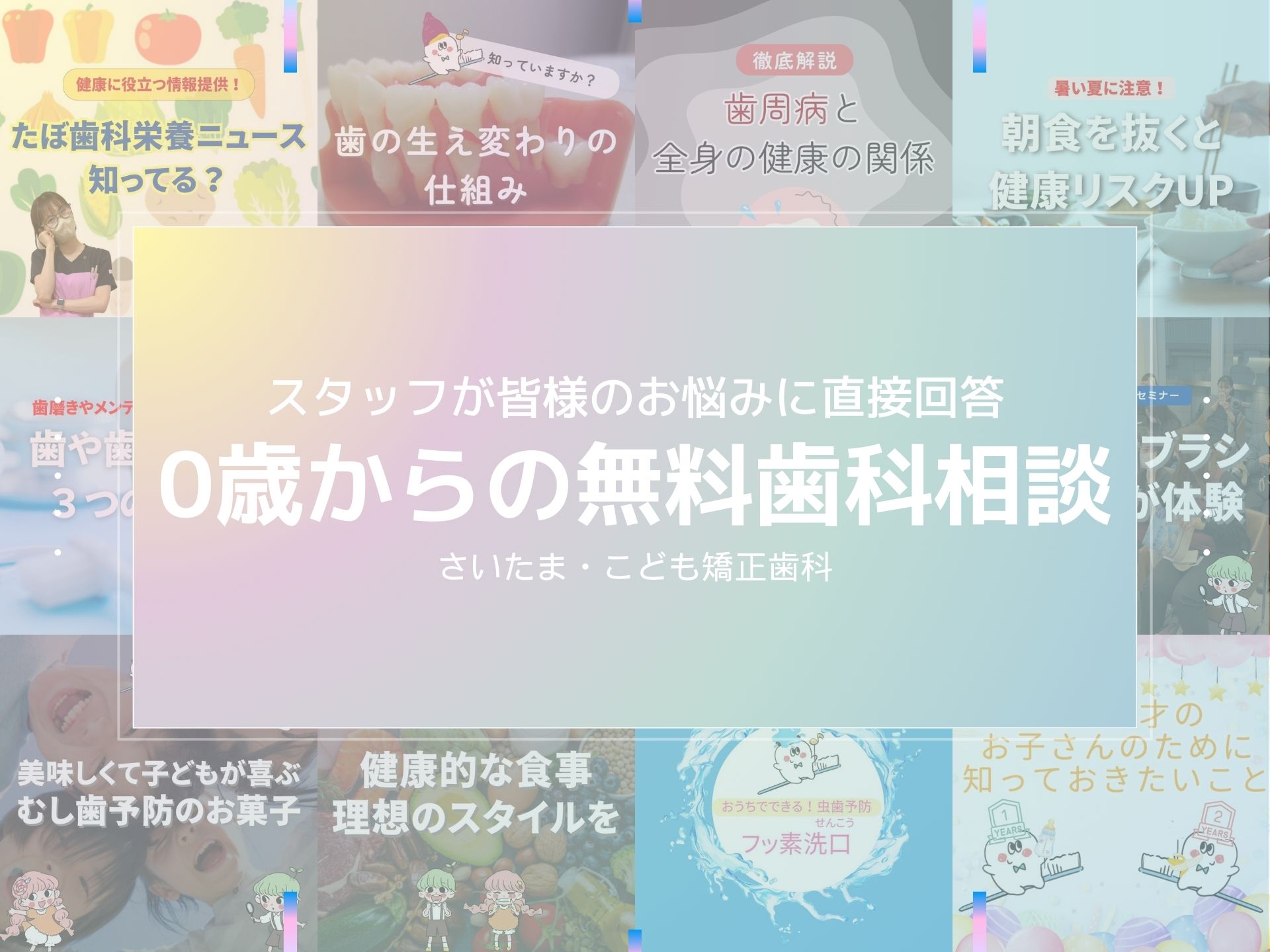 たぼ歯科医院は浦和駅徒歩1分圏内にある歯科医院です。 当院では0歳から100歳までの歯科予防を目指し日々診療にあたっています。 さいたま・こ ども矯正歯科では0歳からの歯医者へ通うことの大切さの啓蒙や、 歯科医院の保育士 & 管理栄養士による歯の予防や栄養指導を行っています。 今回のイベントでは、 当院の歯科検診や各種指導を体験もできるコーナーを用意しております。 産前産後の歯に関するご相談、子どものうちに行う 歯の矯正など、現場で働く当院スタッフが皆様の悩みを解決させていただきます。