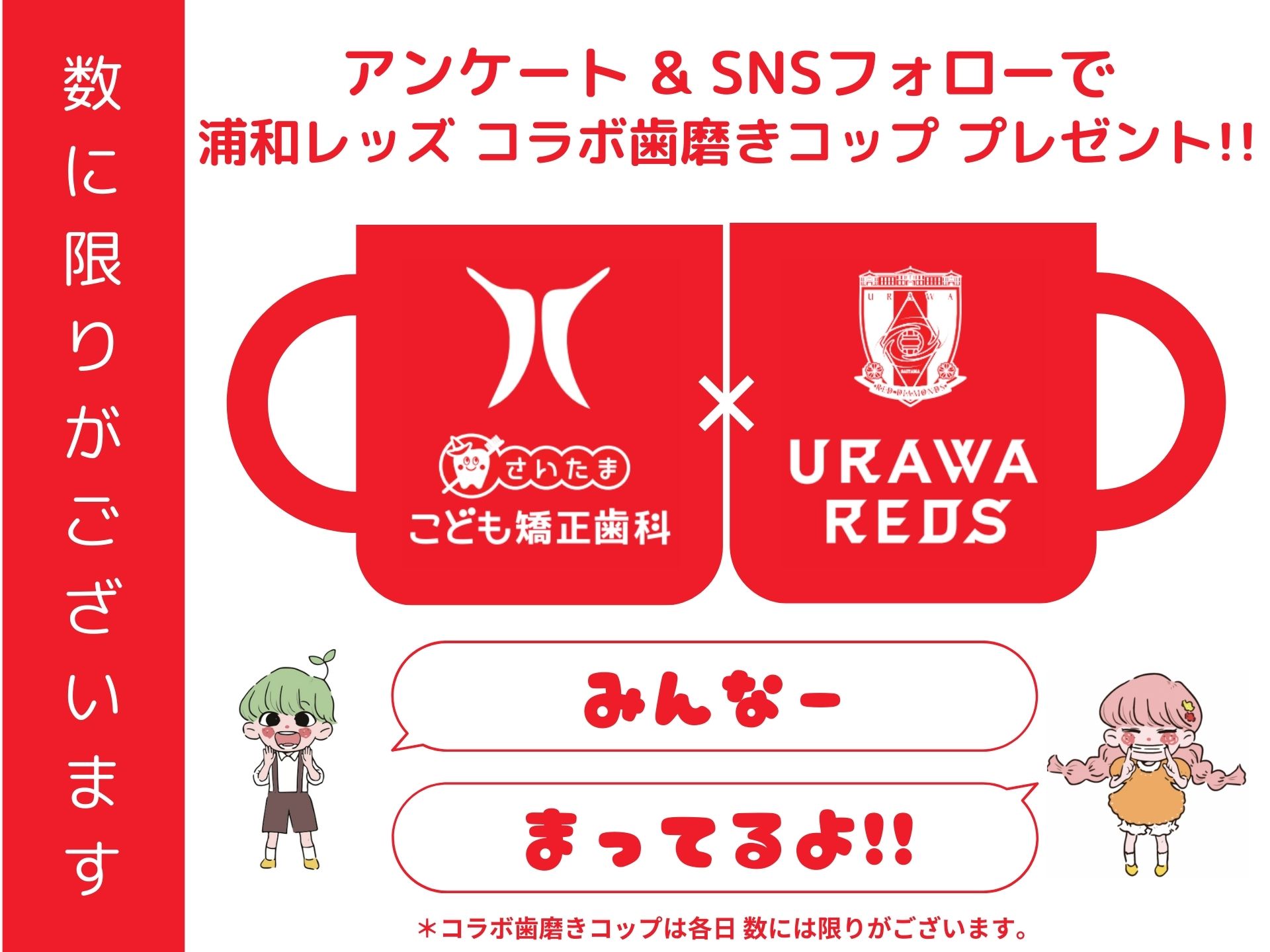 当院で行っているイベントや歯科教室をご案内! 当医院には、歯科医師や歯科衛生士だけでな く、保育士や管理栄養士も在籍しています。 新しいイベント情報はInstagramでお届け! Youtube でもタメになる情報を発信! 各SNSをフォローいただいた方には、 浦和レッズコラボコップをもれなくプレゼント*数に限りがございますので予めご了承ください。